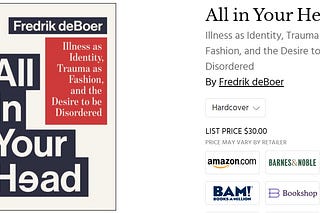 Announcing My Next Book, All in Your Head: Illness as Identity, Trauma as Fashion, and the Desire to Be Disordered