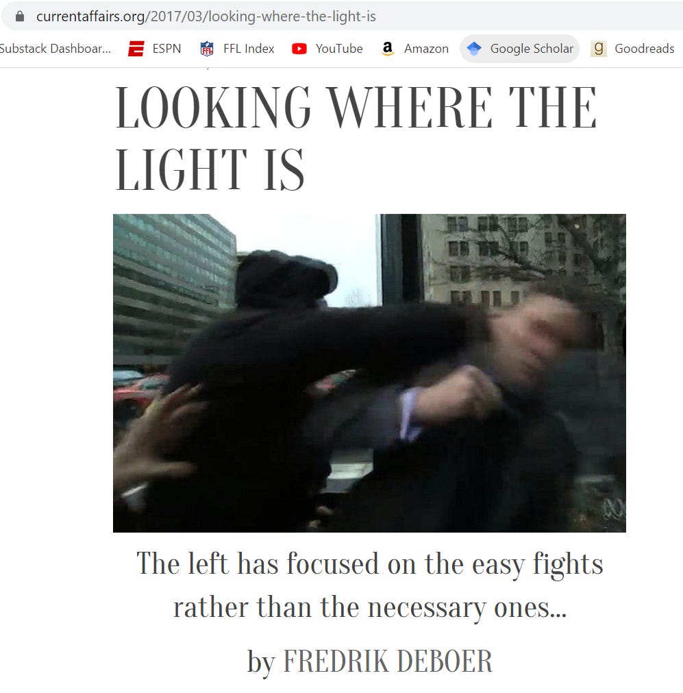 Ah, but I’m questioning a progressive and anti-racist and her worldview (and hustle), so I am surely just a classic Substack guy. When you can’t object to anything at all, lest you be consigned to the list of “anti-cancel culture guys,” you can’t ask if things make sense, if the tactics people in the social justice world endorse actually do what they’re meant to do. The point is to build an actually-more just world, right? So we have to figure out what actually works. I don’t begrudge people who are casting around for solutions to entrenched problems. But it’s not enough for a solution to have good intentions. It has to actually be a solution. To figure out if something actually is a solution you have to have an internal debate. You have to ask tough questions - not “just asking questions” but actual hard questions that stem from the world being a complicated place. But you can’t do that if you insist that any internal criticism is a con or a way to show allegiance to the alt-right.