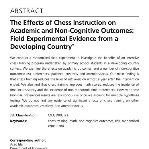 Click through to the tweet and you’ll see in the thread that learning to play an instrument, learning a second language, and playing sports have no cognitive or educational advantages either. (The professor behind the thread rightly notes that these things are good in and of themselves, which I’ve been sure to stress in the past myself.) Because of fundamental difficulties in researching education, correlation is constantly mistaken for cause - that is, students who are strong or weak in educational metrics will also non-randomly be associated with things we might want to study as causative, such as learning to play chess. When we get high-quality randomized research, we very often see results like the above, that the association is not causative and that the variable has no effect. I have been saying this for ten years, and it’s a dominant theme of my first book: in education research, if you just keep betting on the null, you’ll never go broke. Put more simply and sadly, nothing in education works. Student outcomes are remarkably sticky even in the face of considerable intervention.
