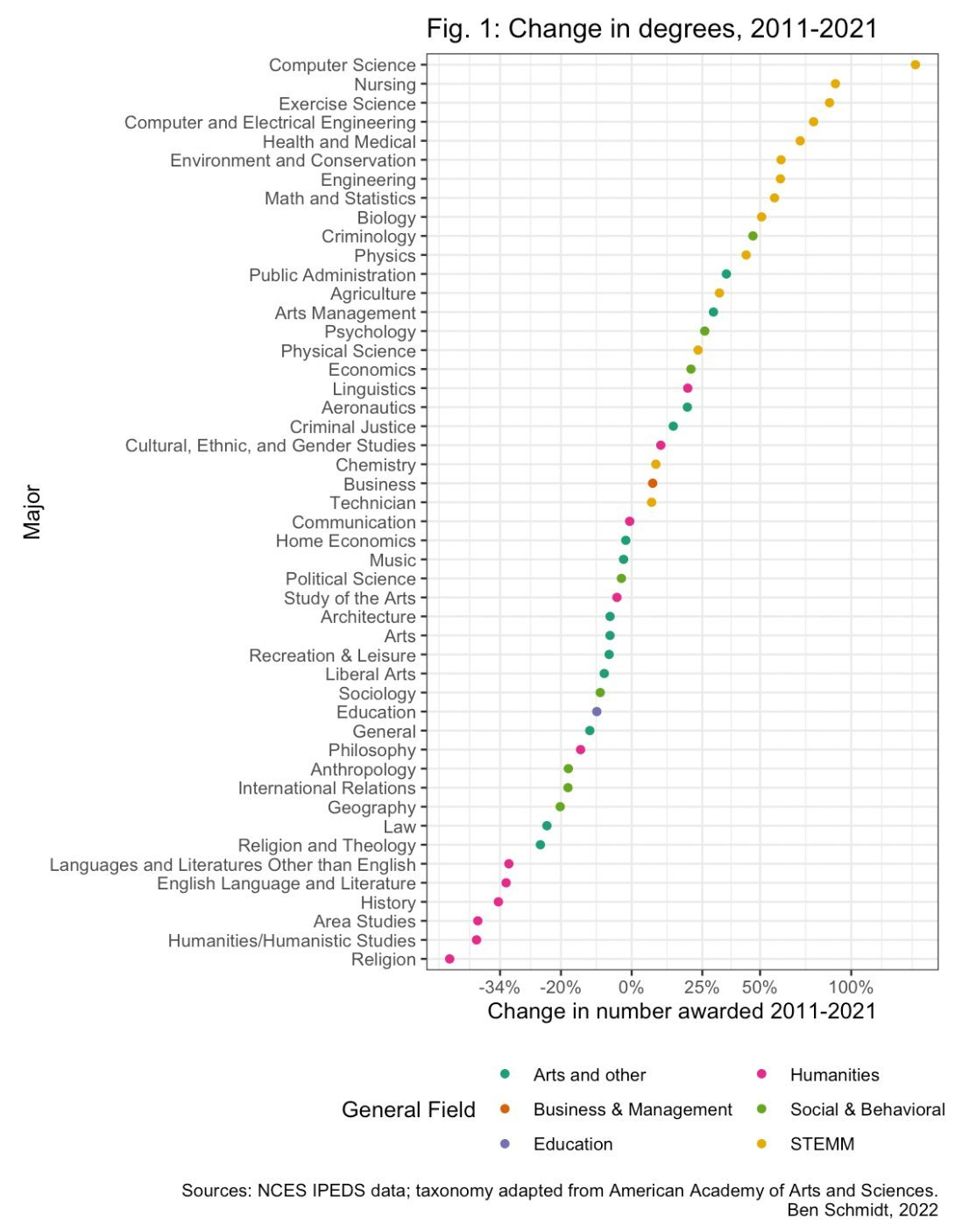 It’s so strange to me how many people in the policy world don’t seem to grasp this basic reality: educated labor is sold in a market like any other, which means it’s subject to supply and demand. College degrees in general and specific college degrees are valuable depending on the demand for them and the number of people who have them. I’m not reasoning from first principles here; we know this empirically. Yes, I’m once again referring to this NBER paper, which found that over the course of more than a century the college wage premium was remarkably predictable simply as a function of the number of people with college degrees and the number of jobs that called for them. Which, duh. I suppose you could argue that specific majors aren’t subject to supply and demand in the same way as college degrees in general, but… why wouldn’t they be?