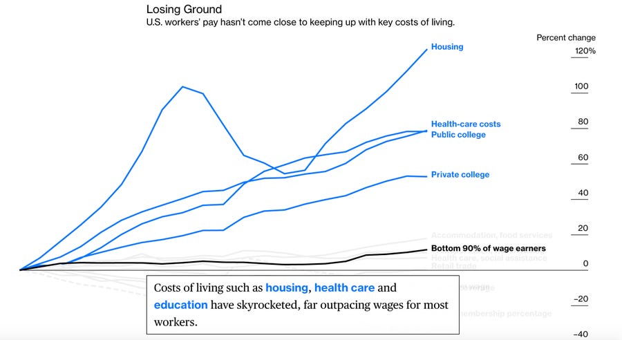 Of course, the tactics homeowners use to protect their behavior have deleterious social effects that lead to spiraling housing costs for everyone, particularly in our urban cores. And we need policy that encourages building and drives the costs of housing down, which will inevitably disadvantage some homeowners. Yes, let’s reform and build. Protecting the property values of incumbent homeowners is certainly weighed far too heavily in the system as it currently exists. But in the big picture, the sensitivity of homeowners to those property values is deeply exacerbated by an overall unhealthy macroeconomic state of affairs. If those homeowners weren’t sending every penny to the local daycare or college for their kids, maybe they wouldn’t be so protective of their home value. If those homeowners weren’t struggling to repay medical debt, maybe they wouldn’t fret so much about protecting their only substantial asset. And if their wages had risen commensurate with productivity since the late 1970s, maybe they would worry less about how much they could get for their house if they were forced to sell in an emergency. YIMBYs just about never ask core questions about why NIMBYs are so protective of their house as an investment.