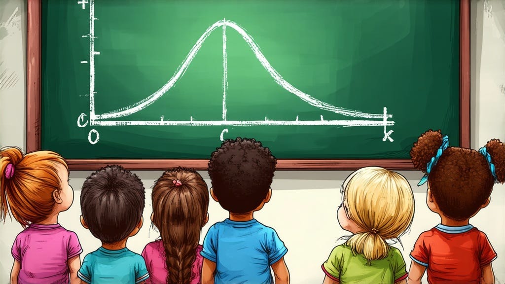 Doesn’t this tossed-off hypothetical reference contain the whole damn thing, if you look deeply enough? Let’s set aside whether dyslexia is one thing or many things and whether or not it’s simply a term that we came up with to say that some people are poor readers, as a matter of compassion. Let’s just consider this as a matter of kids who are good at reading and kids who are bad. If we concede that this divide exists, if we think that there are some people who have a natural aptitude for reading or any other academic skill, and some who don’t, then this endless warring over minor pedagogical differences becomes very low-stakes indeed. If we know that what dominates in educational outcomes is not a variable of schools or teachers but of students, then we can go one by one by one through our different education debates and dismiss them as irrelevant. The whole world of education media spends its time picking over perpetual minor squabbles that are all vastly less important than the simple question of whether academic ability, like all human abilities, is to some degree innate and normally distributed throughout the population. In several places in her essay, Lewis brushes up against that question, and then skitters away. She’s far from alone.