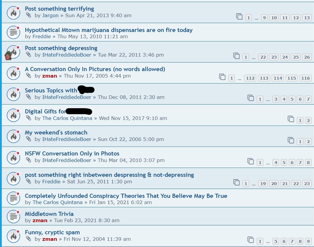 Our Fantasy Football Website, the (private secret password-protected) message board of my high school friends and our fantasy football league. Started in 1992, my fantasy football league is old enough that our commissioner Zman (two years older than me, my older brother’s grade) used to hand score the games by reading the box scores out of the newspaper. Our website, a classic internet forum, is in its current incarnation about 17 years old. Naturally, most of it is not about fantasy football at all, but about politics, movies, food, current events, and memes. It’s been a way for a core group of 15ish people - OK, 15ish dudes - to stay in close contact years after we moved on from home. Some people have Something Awful, some people have 4chan, some people have Reddit. I have this.