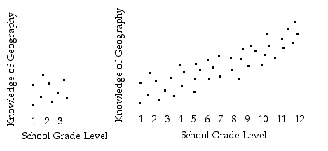 This really helps show restricted range in an intuitive way: when you're looking in too close at a small range on one variable, you just don't have the perspective to see the broader trends.