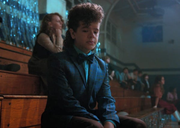 In early seasons there are times that Mike is presented almost as the protagonist of the show. He’s the leader of his little gang and the guy who gets the girl. And he stomps around his scenes, scowling and acting like he’s better than everyone else. Here’s my challenge: tell me a single time Mike has ever done anything of value. Seriously. What is that haughty shithead bringing to the table? This would be fine if the show seemed to know that Mike is a useless bundle of sticks, but he’s portrayed as a figure worthy of admiration. He’s also too cool for Dungeons & Dragons now but dresses like he’s going to a theme party every day of his life.