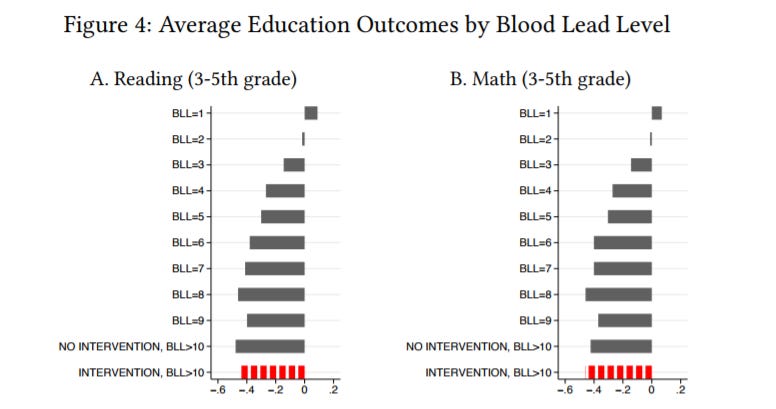 Unsurprisingly, lead exposure has a serious impact on educational outcomes: