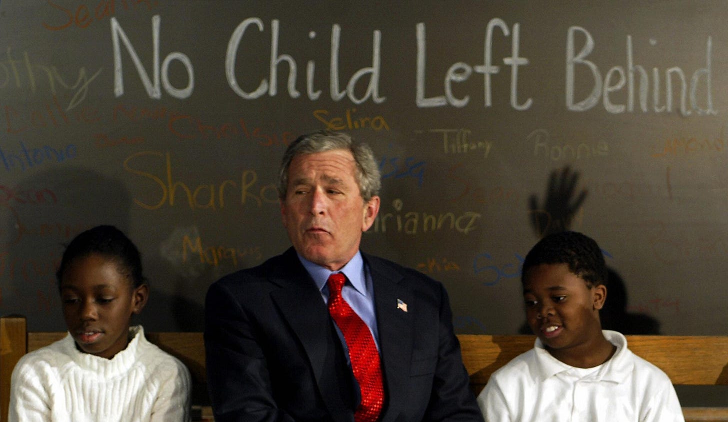 What happened? As I said, read Yglesias’s pieces if you’re inclined. Short version, I think the most important contributor to this development was the election of Donald Trump, which ramped up partisanship and made bipartisan movements unpalatable. Democrats had helped George W. Bush with his disastrous reform efforts, but personal revulsion towards Trump helped ensure that wouldn’t happen again. When Trump nominated archenemy of public schools Betsey Devos as his Secretary of Education, many feared the worst. But Trump transparently did not give a shit about education, and Devos’s ugliness ultimately wore off on the school reform movement in a drastic way. No Child Left Behind had been an abject disaster and was considered so, by the 2010s, even by many of the bill’s old supporters. And as Education Realist has argued, money played a big role in opposition to endless state standardized testing; NCLB had provided funds for the initial development of tests, but not for regular administration, leaving a significant financial burden on states that they have been eager to get out from under. Conveniently, the opt-out movement of parents who were frustrated with all the testing helped give state politicians cover to agitate in that direction. And by the late 2010s, the social justice philosophy had come to dominate left-of-center Americans, at least in elite circles, which led to broad adoption of Ibram Kendi-style resistance to achievement gap rhetoric in toto.