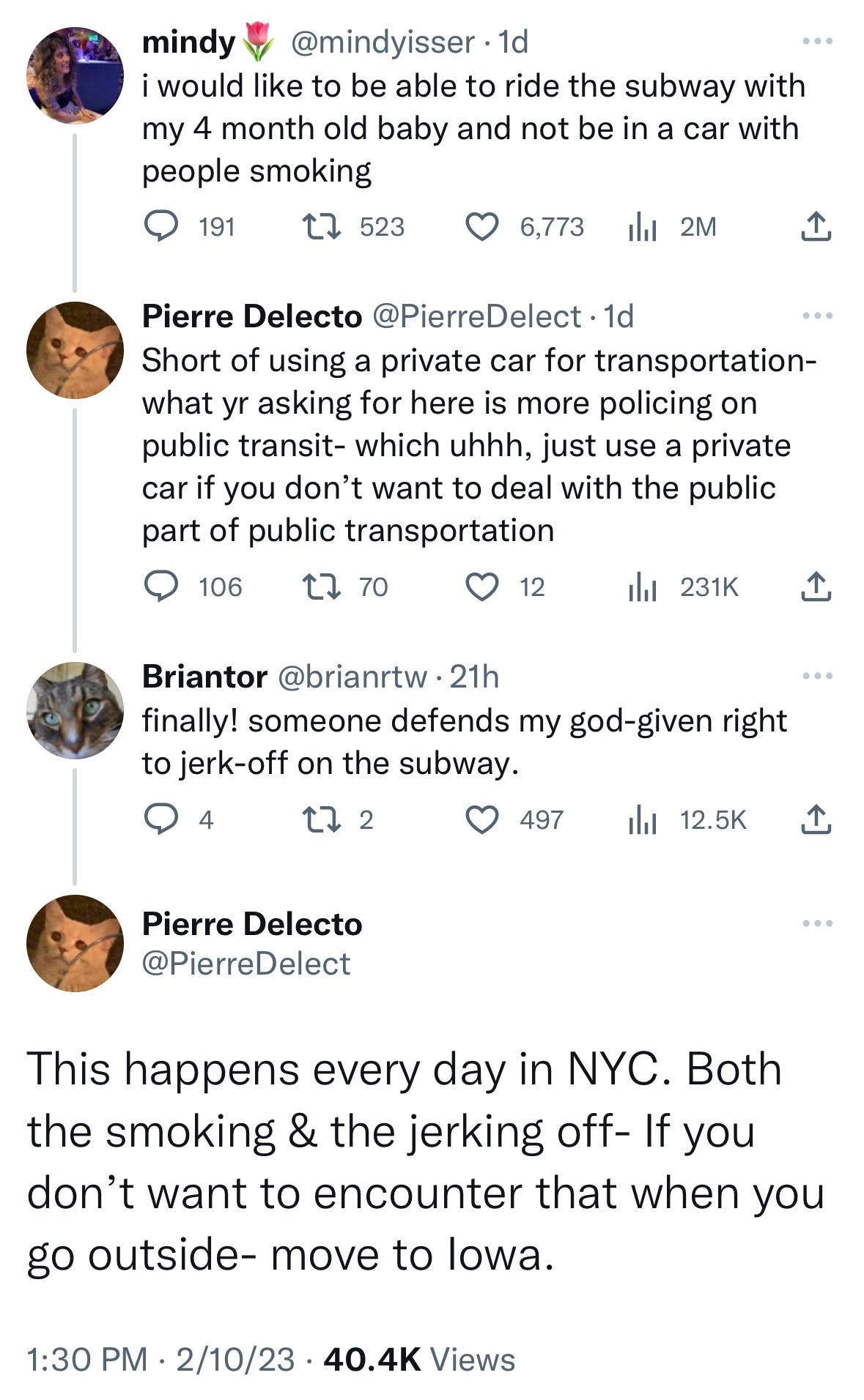 The woman whose account appears at the top of this picture started a Twitter storm, somehow, by publicly wishing that she could take her child onto the subway without exposing them to secondhand smoke. She was beset by a certain online species of ostensible leftist who is against ever trying to enforce any kind of rule, anywhere, ever. See, rules are the hand of oppression, or something, and since most of society’s rules are meant to be enforced by the police, trying to enforce them (merely wishing that they be enforced) is an endorsement of the police and their violence….