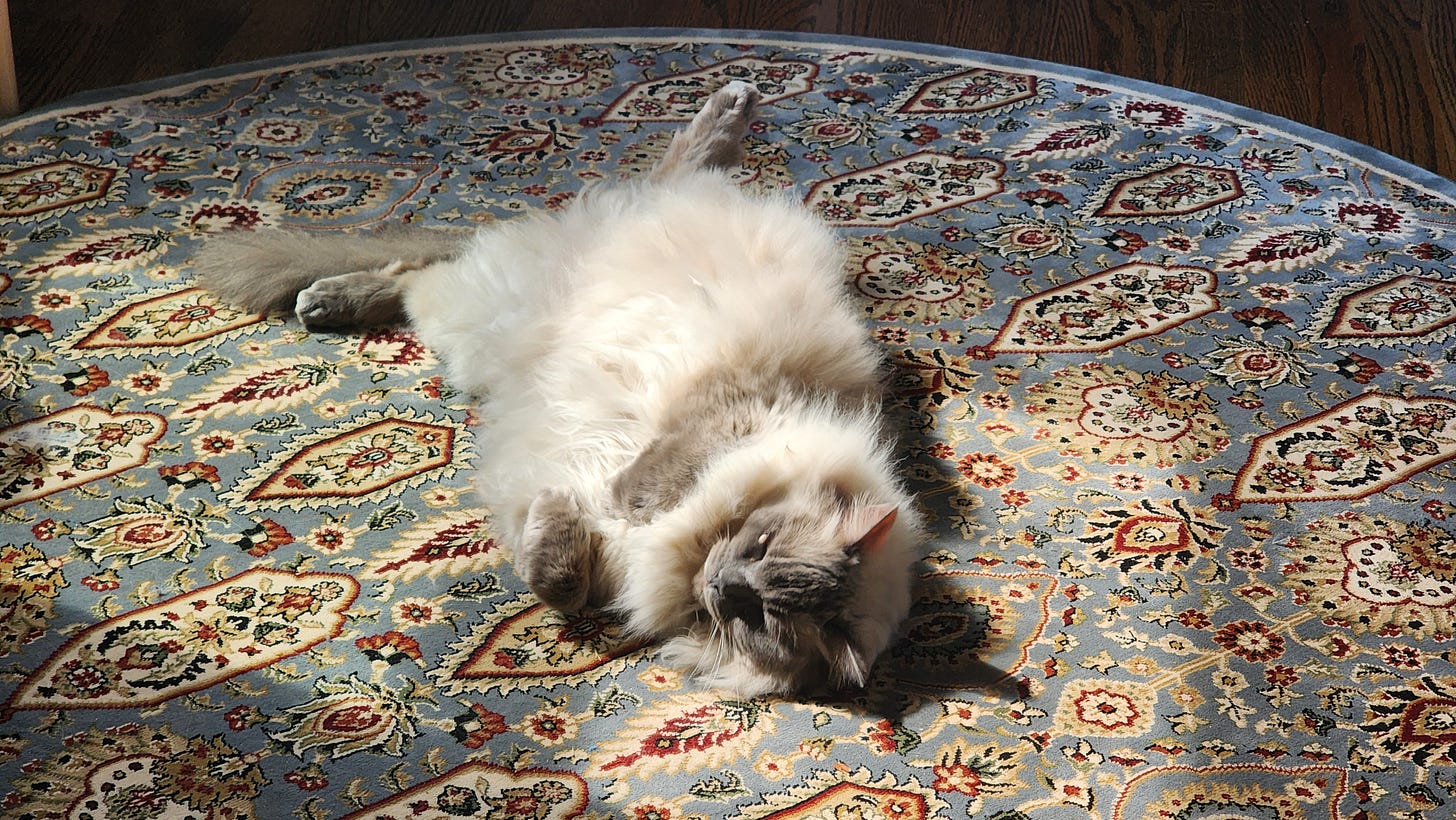 Suavecito. Still the best cat, going on thirteen years old. A galactic pain in the ass, deeply aloof, prone to biting. Biting me, his master! All part of the full Suavi experience. He’s really gotten attached to Ami lately, which I wouldn’t have predicted given his general nature. All in all, A+.